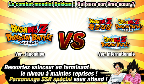 Dragon Ball Z Dokkan Battle lance une compétition mondiale entre la version japonaise et la version internationale se nommant « Le combat mondial Dokkan ! Qui sera son âme sœur ? »