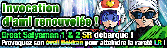 De plus, « Great Saiyaman 1 & 2 » pouvant atteindre la rareté LR fera son apparition dans l’invocation d’ami renouvelée !