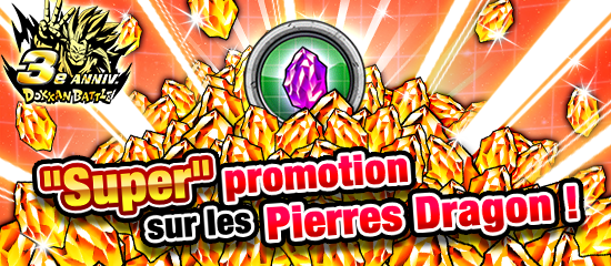 * Une « Pierre Dragon divine 3 » peut être obtenue lors de la première connexion au jeu pendant l’événement « Mille mercis ! Fantastique 3e anniversaire ! Anniv. Dokkan ! Bonus de connexion ! Partie 1 ».