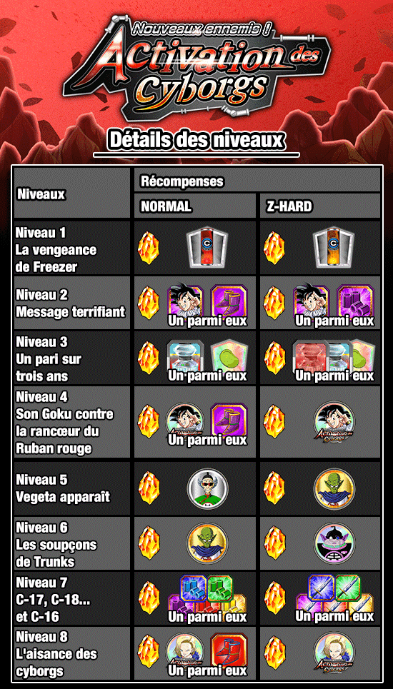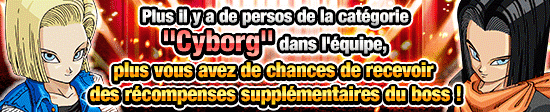 Plus il y a de personnages de la catégorie « Cyborg » dans l’équipe, plus vous aurez de chances d’obtenir des récompenses supplémentaires dans cet événement !