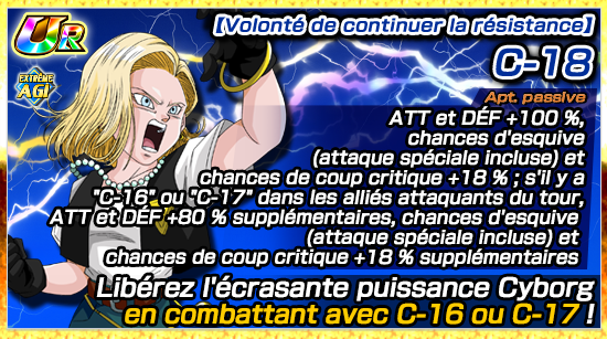 De plus, [Résolution pour la bataille] Krillin et [Menace avançant silencieusement] C-18 pourront utiliser les médailles d’éveil « Médaille de la bataille royale », obtenues dans le Lieu d’échange, pour provoquer leur éveil Dokkan !