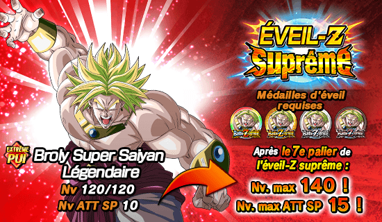 [Le super guerrier destructeur] Broly Super Saiyan Légendaire ayant atteint le niveau 120 peut utiliser l’éveil-Z suprême grâce aux médailles d’éveil exclusives obtenues dans cet événement !