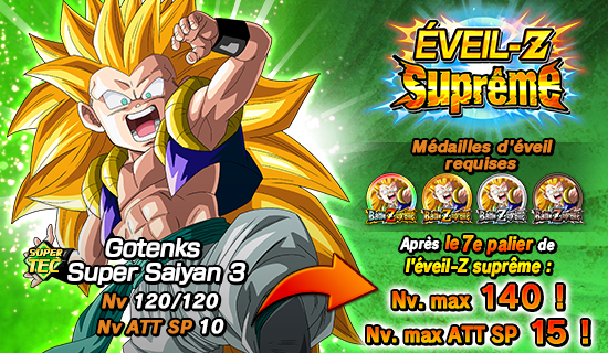 Les médailles d’éveil requises pour l’éveil Dokkan de [Sauveur éternel] Gotenks Super Saiyan 3 , [Retour magistral] Gotenks Super Saiyan et [Foi en la super fusion] Gotenks Super Saiyan peuvent être obtenues dans le niveau 2 de l’événement Dokkan « L’inégalable héros de l’espoir  » !
