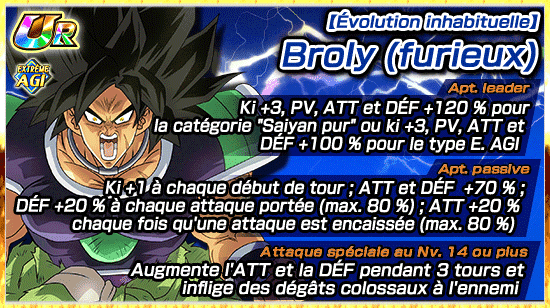 Une fois le niveau max atteint grâce à l’entraînement, [Évolution inhabituelle] Broly (furieux) pourra aussi utiliser l’éveil-Z suprême !