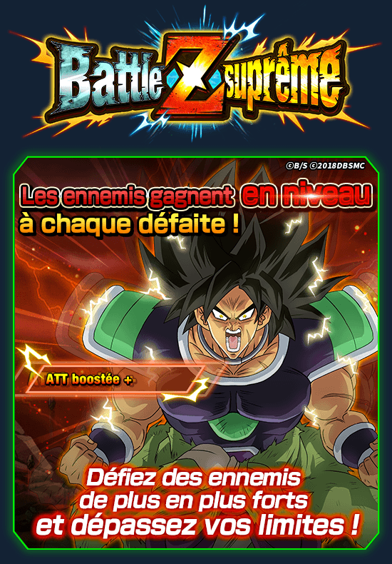 * Même si vous avez terminé tous les niveaux de Battle Z suprême : « Saiyan exilé Broly » auparavant, vous devez tout de même commencer par le niveau 1 dans cette nouvelle édition.