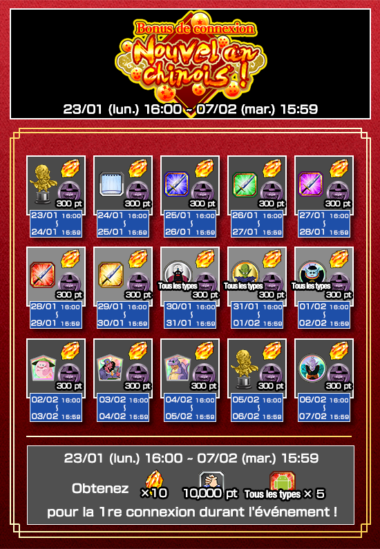 * Attention : les horaires des événements de Dokkan Battle sont indiqués à l’heure d’hiver (PST), et non d’été (PDT).