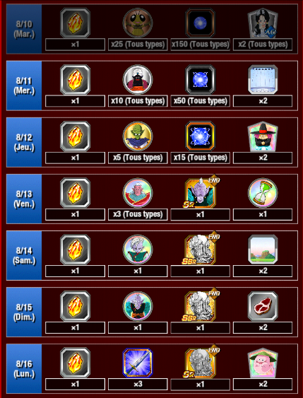 Obtenez des Pierres Dragon ainsi que d’autres objets facilitant le développement de personnages dont des objets d’entraînement et Statue de M. Satan (platine) via les bonus de connexion !