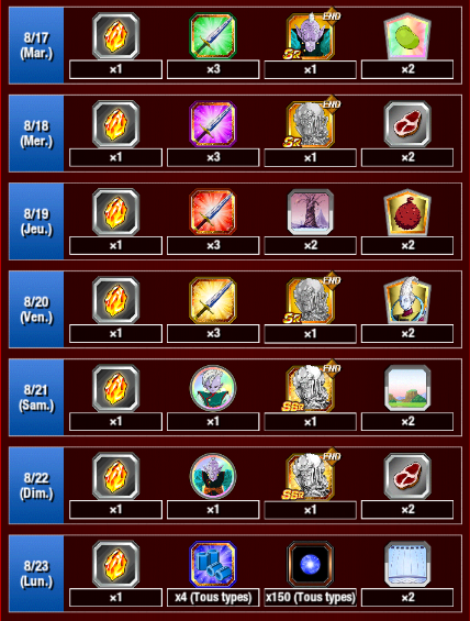 * Attention : les horaires des événements de Dokkan Battle sont indiqués à l’heure d’hiver (PST), et non d’été (PDT).