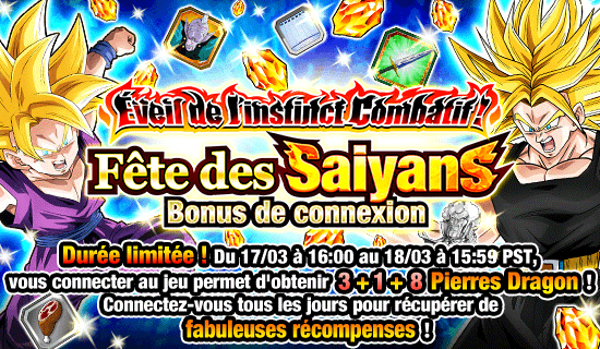 [Bonus] Éveil de l’instinct combatif ! Fête des Saiyans Bonus de connexion