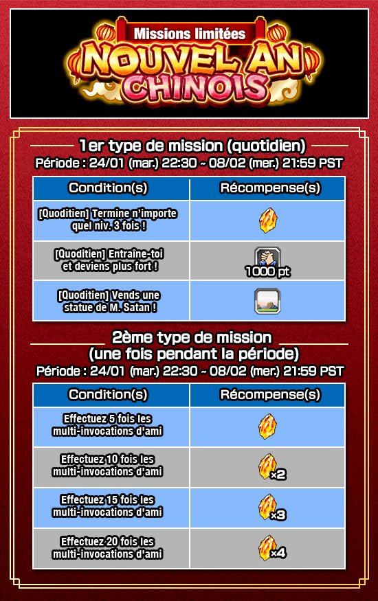 Terminez les missions limitées pour obtenir 25 Pierres Dragon au maximum !