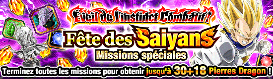 Éveil de l’instinct combatif ! Fête des Saiyans Missions spéciales