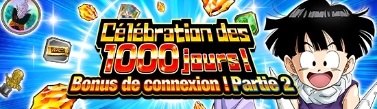 * Une fois que l’événement Festival Dokkan « Célébration des 1000 jours » prend fin, les tickets d’invocation « Ticket de célébration » non-utilisés pendant la période de l’événement ne seront plus valables. Veillez à les utiliser avant la date limite.