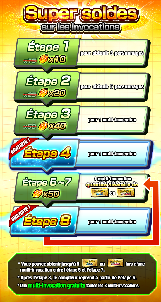 ou tickets « Fes. Dokkan « Extrême » » lors des multi-invocations de l’étape 5 à l’étape 7 et la quantité maximum est de 5 par multi-invocation !