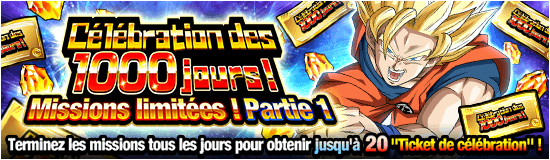 * Les tickets d’invocation « Ticket de célébration » ne peuvent être uniquement utilisés que dans l’invocation Festival Dokkan « Célébration des 1000 jours ».