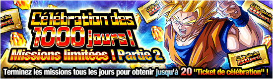 * Une fois que l’événement Festival Dokkan « Célébration des 1000 jours » prend fin, les tickets d’invocation « Ticket de célébration » non-utilisés pendant la période de l’événement ne seront plus valables. Veillez à les utiliser avant la date limite.