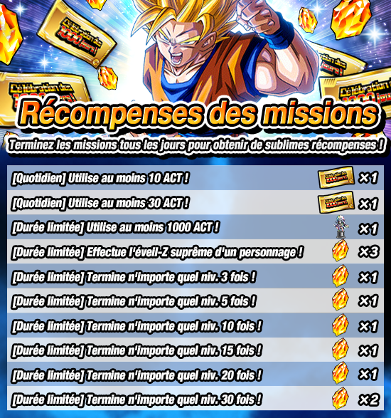 En plus, vous pouvez obtenir de superbes récompenses telles que « Statue de M. Satan (diamant) » et des « Ticket de célébration » en terminant certaines missions !