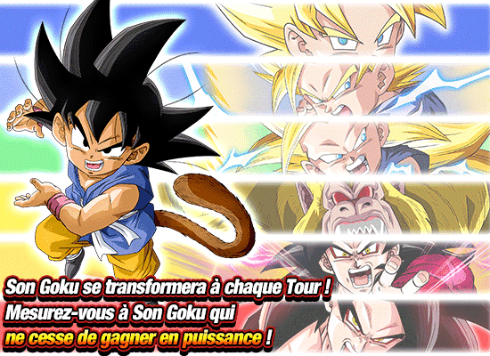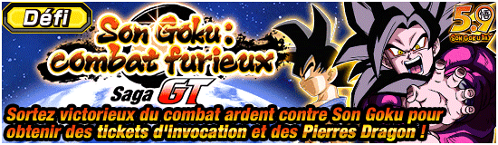 * Les tickets Son Goku : combat furieux obtenus dans cet événement ne permettent d’effectuer des invocations que dans Invocation avec tickets Son Goku : combat furieux – Saga GT , et ne peuvent pas être utilisés dans Invocation avec tickets Son Goku : combat furieux .