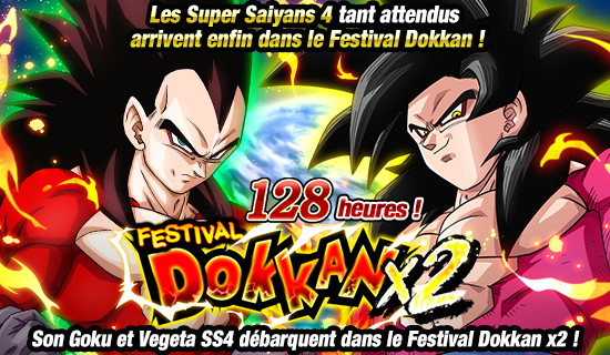 Pendant 128 heures seulement, des super soldes ont lieu sur les multi-invocations du Festival Dokkan x2 de Son Goku Super Saiyan 4 et Vegeta Super Saiyan 4 !