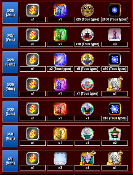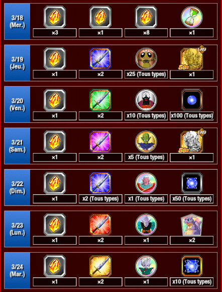 * Attention : les horaires des événements de Dokkan Battle sont indiqués à l’heure d’hiver (PST), et non d’été (PDT).