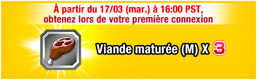 De plus, afin de commémorer l’arrivée des « Objet de récupération d’ACT. », vous recevrez également pendant l’événement un total de 3 « Viande maturée (M) » !