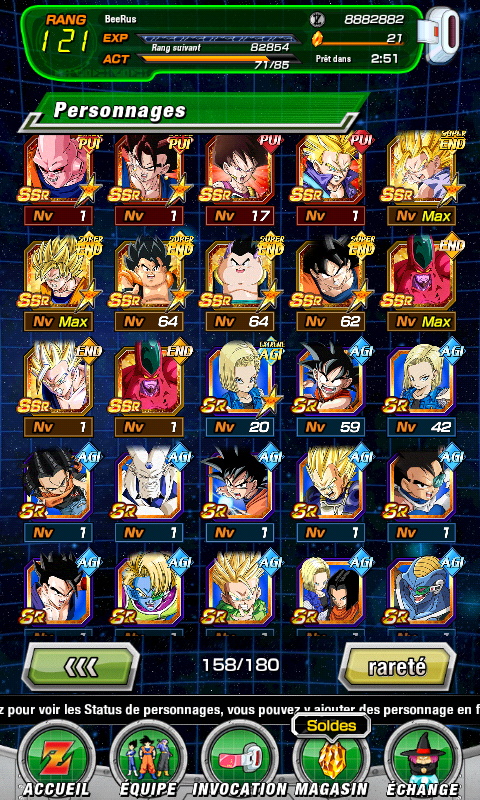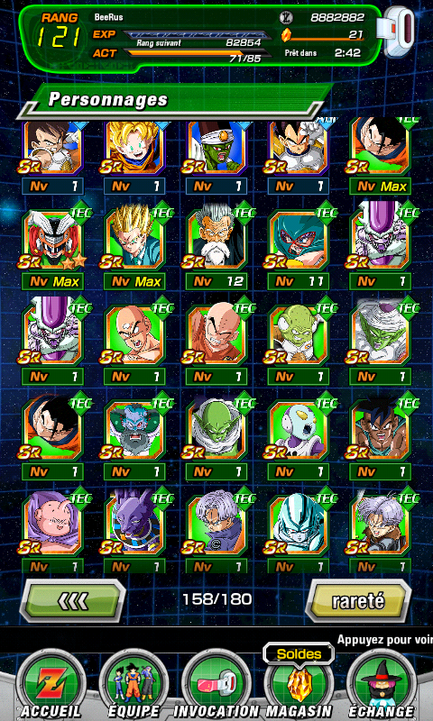 galèreprogresse doucement avec une team survie de l’univers qui fonctionne bien en terme de synergie (Caulifla/Kale/Kefla/Goku UI END spe10/GFA spe10/Yurin), les quetes/histoires ne posent pas vraiment de problème, mais pour penser aux events dokkan c’est pas ça du tout.Donc je me demande si j’ai mieux à faire avec les moyens du bord ou si je dois me concentrer sur quelque chose en particulier. J’ai commencé les médailles de C-13 mais bien relou alors je me suis tourné vers le farm des pierres kaioshin pour attraper Vegeto (tout en sachant que pour le monter spe10 ce sera la torture), mais avec les missions contraignantes qui y sont liées j’ai fini par tenter de droper quelques Metal Cooler pour faire une team extreme low cost marrante, le spe10 de ces gredins va être long aussi.