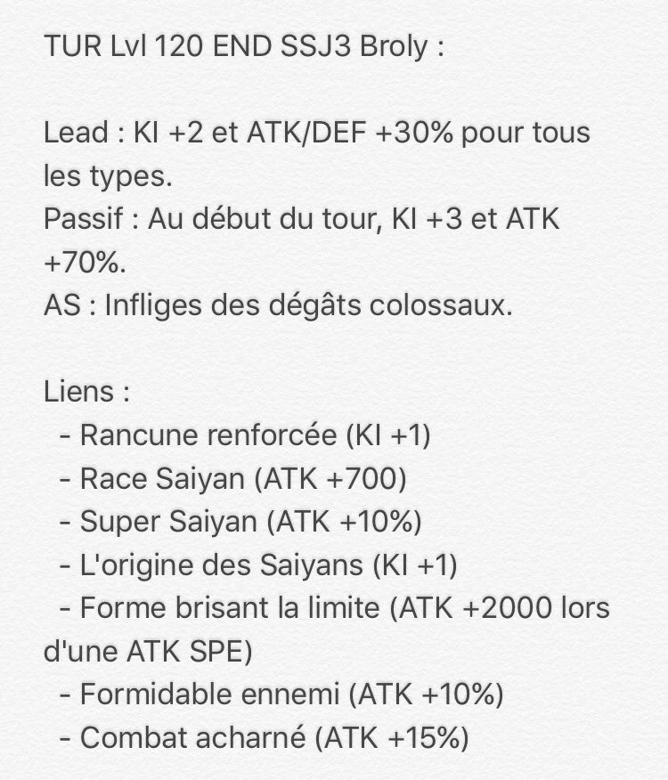 19 juin 2017 à 16 h 12 min #2746229 juin 2017 à 18 h 18 min #28379Les Stats du Broly SSJ3 Neo God Tiers Tec (paye ton malus de défense ^^ )