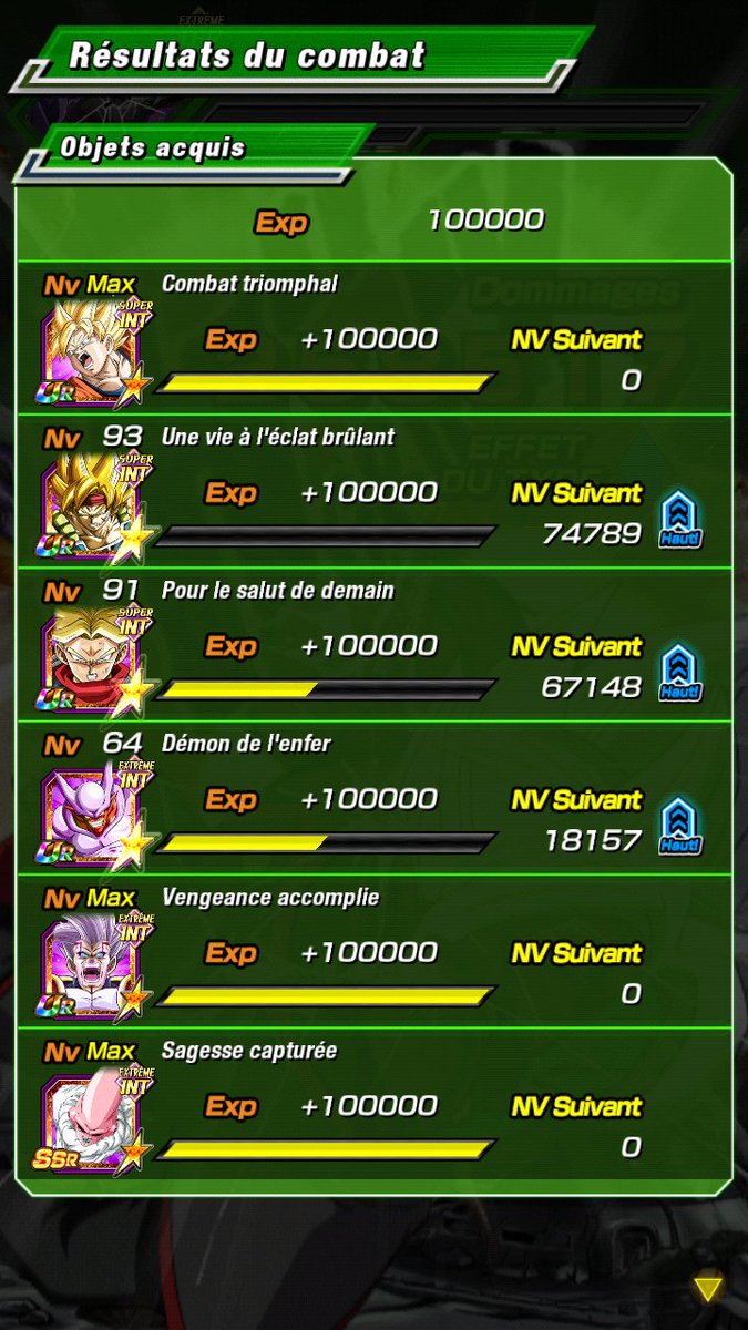 Sinon, pour le fun j’ai testé le niveau Super avec cette team Int (+Buuhan en ami) … bon ça galère pdt la 1ère phase, mais après ça passe tout seul 😀