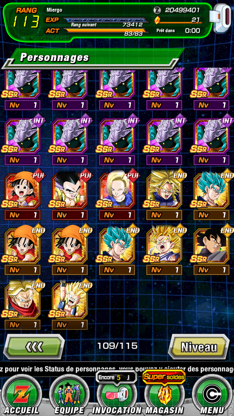 7 juillet 2017 à 9 h 48 min #293088 juillet 2017 à 1 h 41 min #29702Salut, je viens de finir de pull sur les portails Vegeta et Goku SSJ4 en claquant toutes les DS que j’avais économisé depuis mes débuts dans le jeu (1 mois) et voilà ce que j’ai eu (oui, je suis content) :