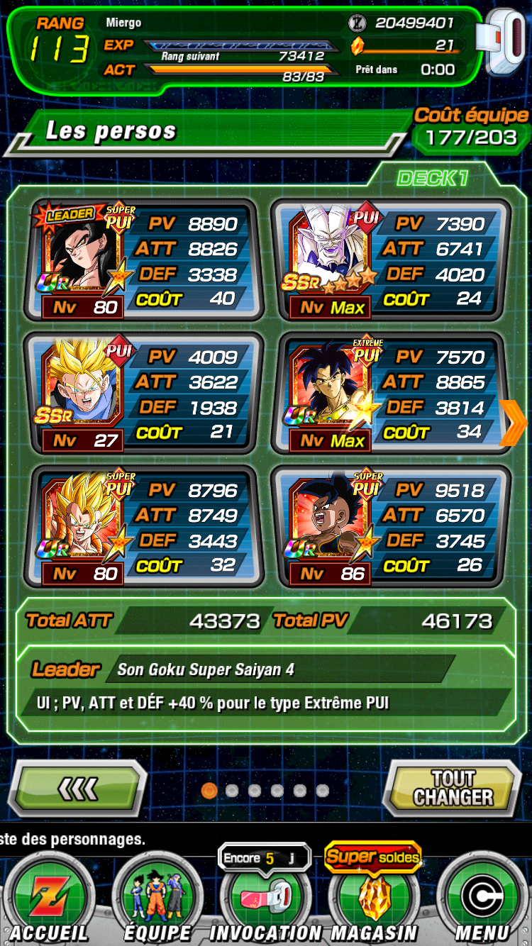 Comme vous le voyez j’ai eu du Gogeta, du Vegeta et du Goku SSJB. À partir de ça vous me conseillerez d’avancer sur quelle team ? Avec quelle couleur j’ai le plus de potentiel, celle que je pourrais monter en premier avant de pensez à me dispatcher sur plusieurs comps.