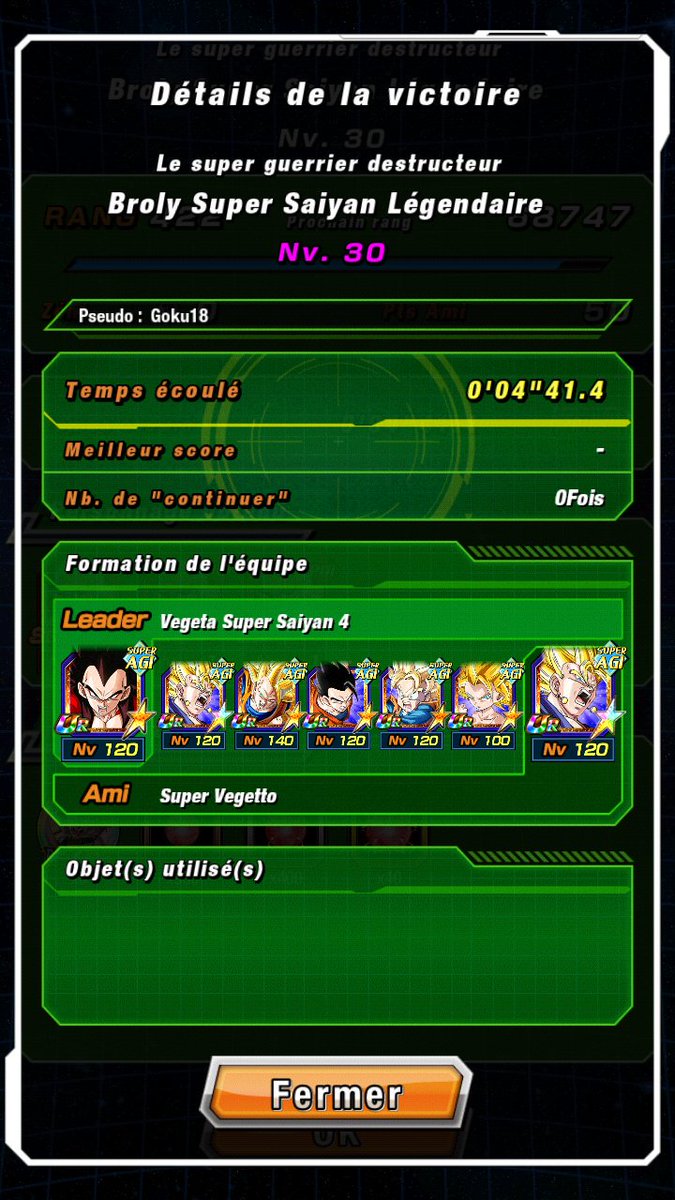 14 avril 2018 à 13 h 45 min #56618Salut ,avec pratiquement que des vegeta4 en ami jusqu’au niv 29 et après grâce a de bonnes esquives et whis qui est bien tombé avec un seul sang-mêlé + l’ami, c’est passer.
