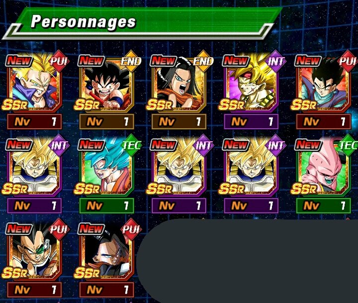 moi j’ai eu goku kk end et surtout vegetto tec. Donc ma team super tec est quasi complète (il me ma que angelku quoi) et j’ai enfin les 15 persos exclusifs tb.