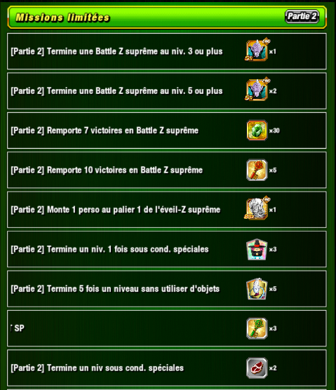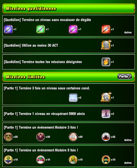 * Vous ne pouvez terminer chacune des missions limitées qu’une fois.