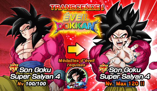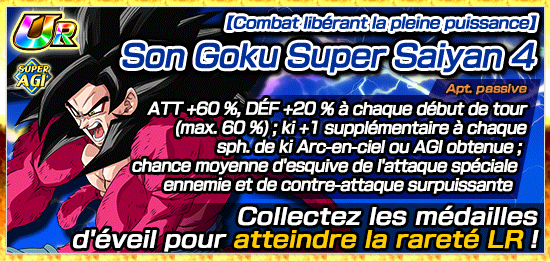 [Éveil miraculeux] Son Goku Super Saiyan 4 pourra utiliser l’éveil Dokkan pour atteindre la rareté LR grâce aux médailles d’éveil obtenues dans les niveaux 1 et 2 !