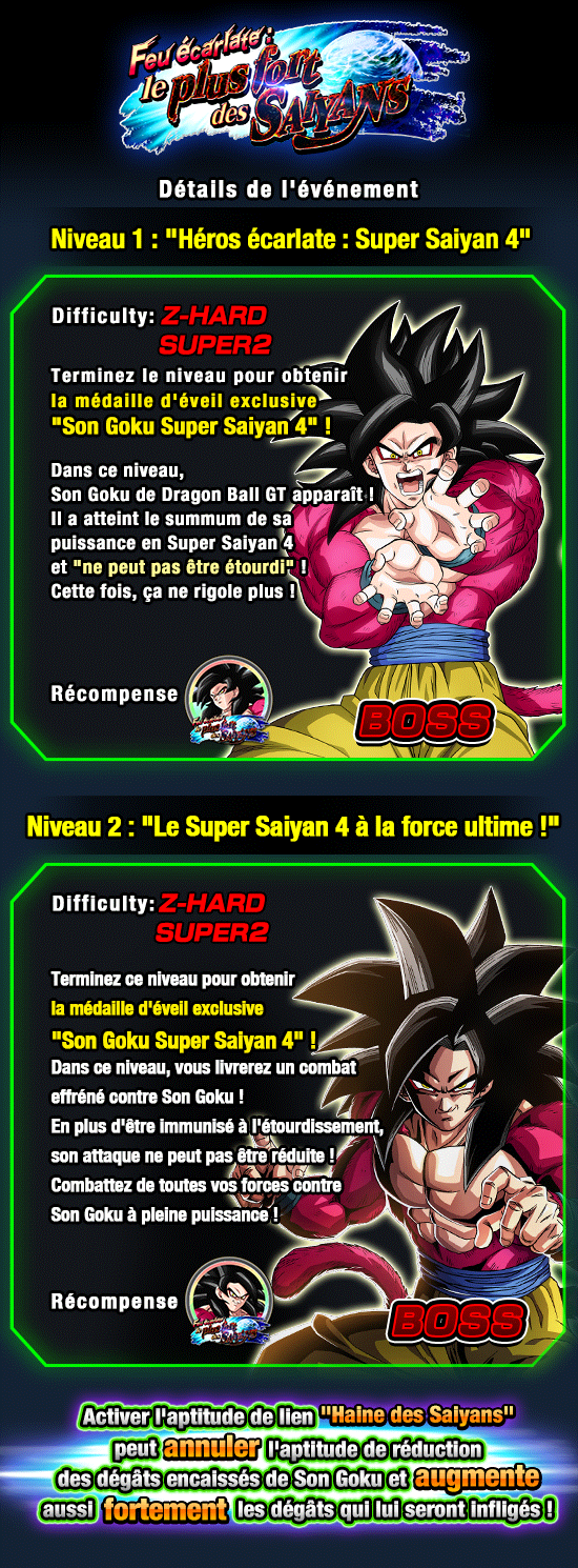 * Les informations ci-dessus sont celles du niveau 2 « Le Super Saiyan 4 à la force ultime ! ».
