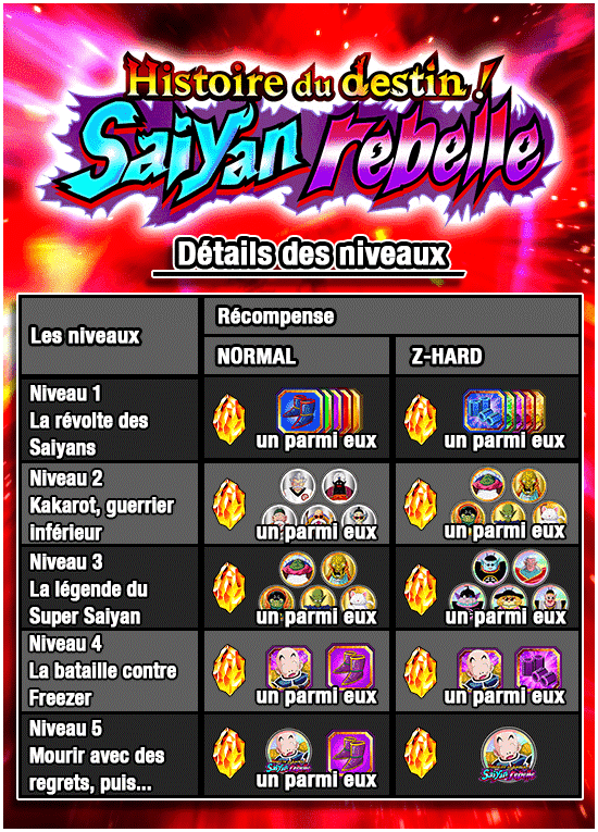 * Utiliser l’éveil-Z pour augmenter la rareté de vos personnages n’augmentera pas vos chances d’obtenir des récompenses supplémentaires.