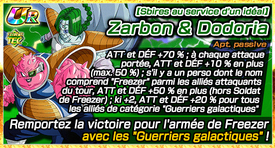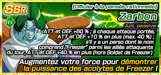 Zarbon, pouvant être obtenu dans cet événement, est de la catégorie Terrifiants conquérants ! Incluez-le dans votre équipe pour augmenter vos chances d’obtenir des récompenses !