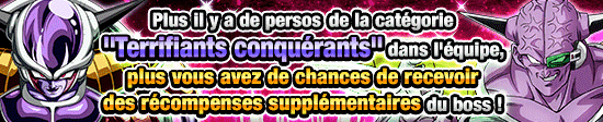 Plus il y a de personnages de la catégorie Terrifiants conquérants dans l’équipe, plus vous aurez de chances d’obtenir des récompenses supplémentaires dans cet événement !