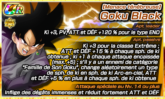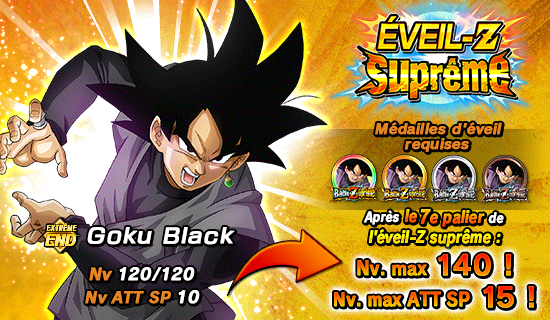 * Le personnage ci-dessus est la forme de [Noirceur insondable] Goku Black disponible dans cette invocation, après avoir provoqué un éveil Dokkan puis un éveil-Z suprême.