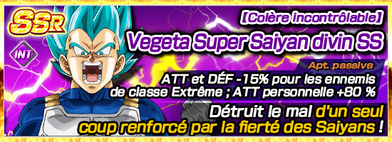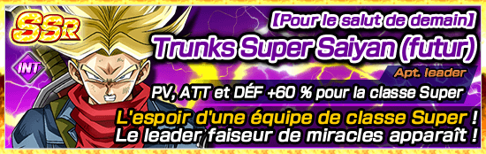 [Évolution du désespoir] Broly Super Saiyan 3 , [Colère incontrôlable] Vegeta Super Saiyan divin SS et [Pour le salut de demain] Trunks Super Saiyan (futur) , qui font partie des personnages SSR en vedette dans cette invocation, pourront utiliser l’éveil-Z suprême après avoir provoqué l’éveil Dokkan et atteint le niveau max !