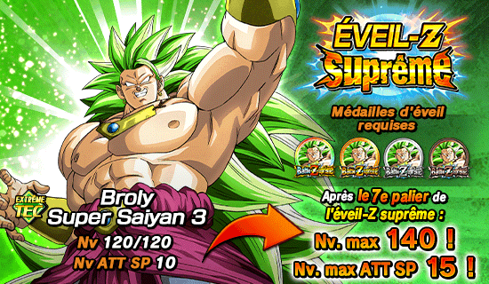 [Évolution du désespoir] Broly Super Saiyan 3 peut utiliser l’éveil-Z suprême grâce aux médailles d’éveil obtenues dans la Battle Z suprême Évolution au-delà de la légende : Broly Super Saiyan 3 !