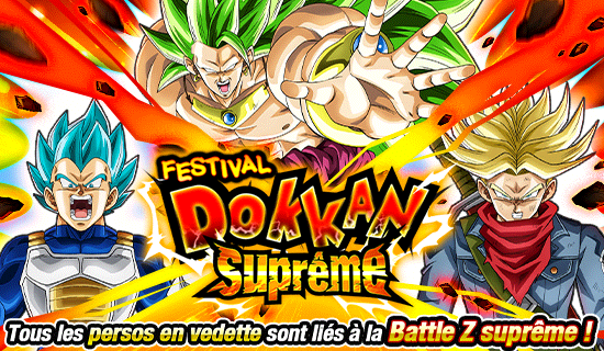 Vous pouvez aussi effectuer des invocations dans l’invocation Festival Dokkan suprême : invocation avec tickets avec les tickets d’invocation Ticket fes. Dokkan suprême 27 obtenus dans le Pack de Battle Z suprême !