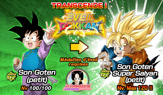 [Forte et charmante lycéenne] Videl et [Fils posthume de Goku] Son Goten (petit) peuvent utiliser les médailles d’éveil obtenues dans l’événement Dokkan La combattante charmante prend son envol pour effectuer leur éveil Dokkan !