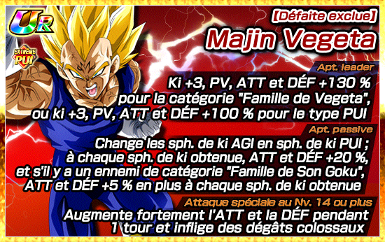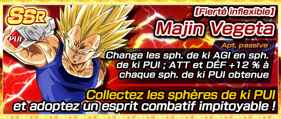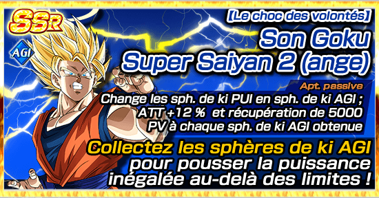 * Les personnages ci-dessus sont les formes de [Le choc des volontés] Son Goku Super Saiyan 2 (ange) et [Fierté inflexible] Majin Vegeta disponibles dans cette invocation, après avoir provoqué un éveil Dokkan puis un éveil-Z suprême.