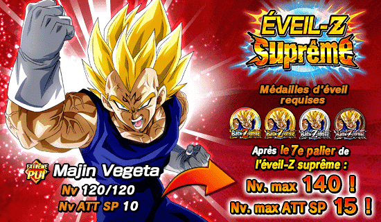 [Le choc des volontés] Son Goku Super Saiyan 2 (ange) et [Fierté inflexible] Majin Vegeta pourront utiliser l’éveil-Z suprême après avoir effectué l’éveil Dokkan !