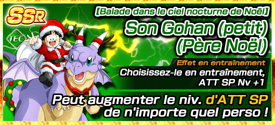 De plus, vous êtes garanti d’obtenir 1 Son Gohan (petit) (Père Noël) pouvant monter le niv. d’ATT SP grâce à l’entraînement en effectuant une multi-invocation !