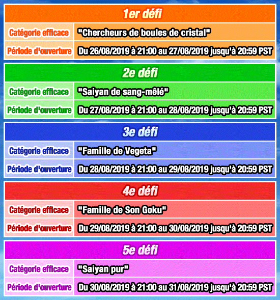 * Attention : les horaires des événements de Dokkan Battle sont indiqués à l’heure d’hiver (PST), et non d’été (PDT).