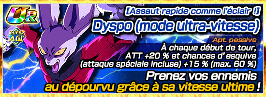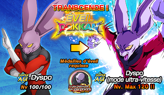 [Guerrier ultra-rapide] Dyspo pourra aussi utiliser l’éveil Dokkan pour dépasser la limite de l’UR et atteindre le Nv. 120 !