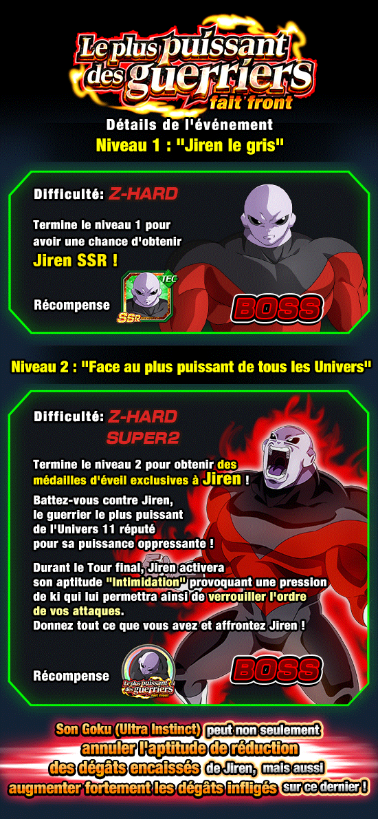 Jiren apparaissant dans tous les Tours du niveau 2 possède une aptitude de réduction de dégâts encaissés et est immunisé contre l’étourdissement et le blocage d’attaque spéciale !