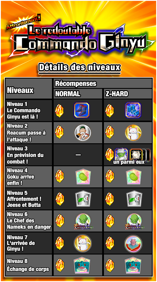 * La mention « Piccolo » utilisée pour préciser le personnage désigné dans les descriptions des missions limitées de cet événement signifie [Guerrier sur sa planète d’origine] Piccolo et [Combattre en tant que Namek] Piccolo.