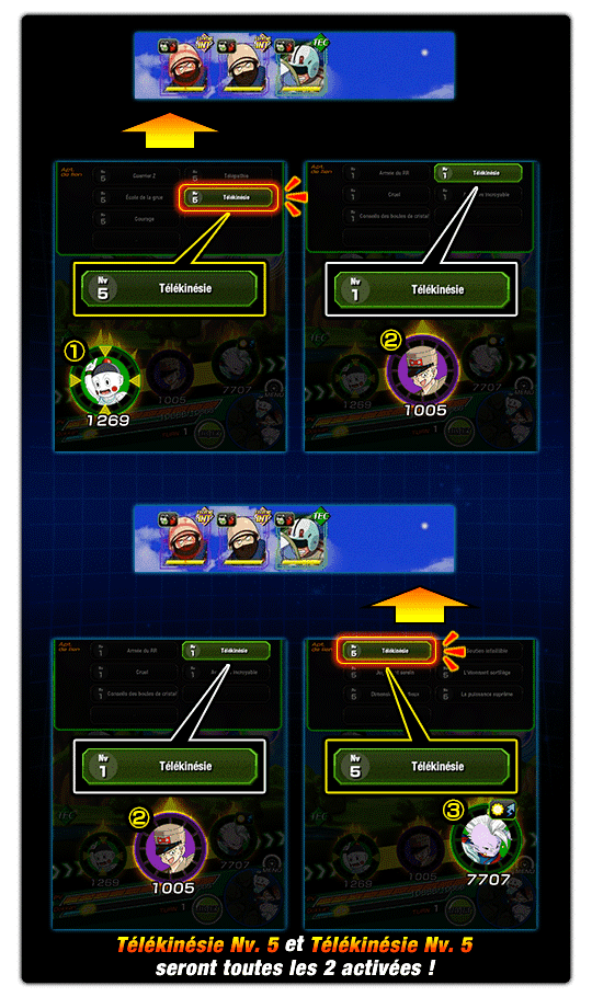 Commandant Blue (2e position) et Kaïo Shin (3e position) activent également l’apt. de lien « Télékinésie ».